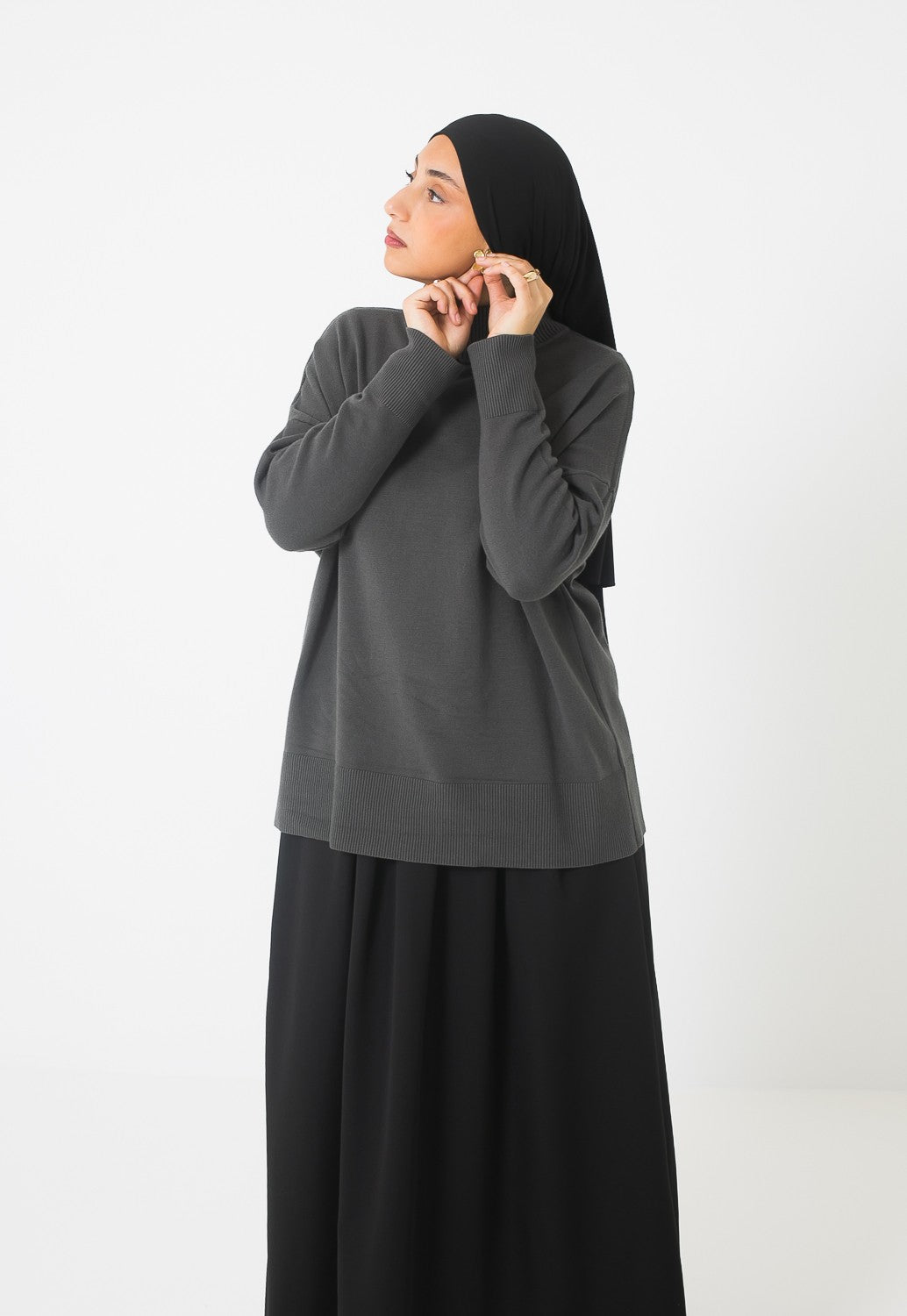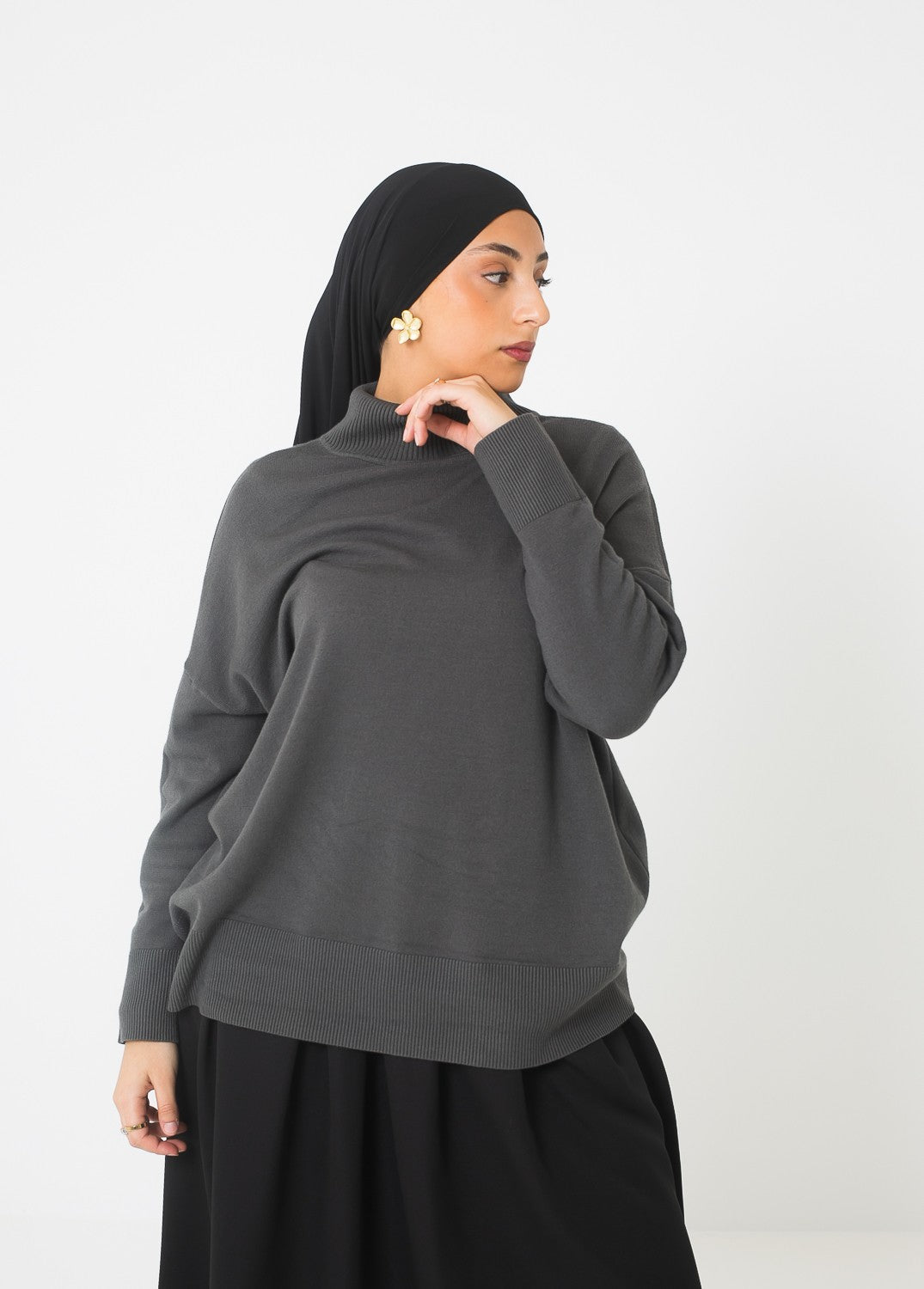 Adoptez un style cosy et élégant avec notre pull ample à col montant, la pièce idéale pour un look modest fashion alliant confort et tendance.