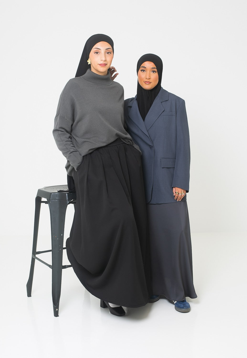 Nous l'avons porté avec la jupe hiver noir, le hijab premium sandy jersey noir et une paire de basket pour un style décontracté.