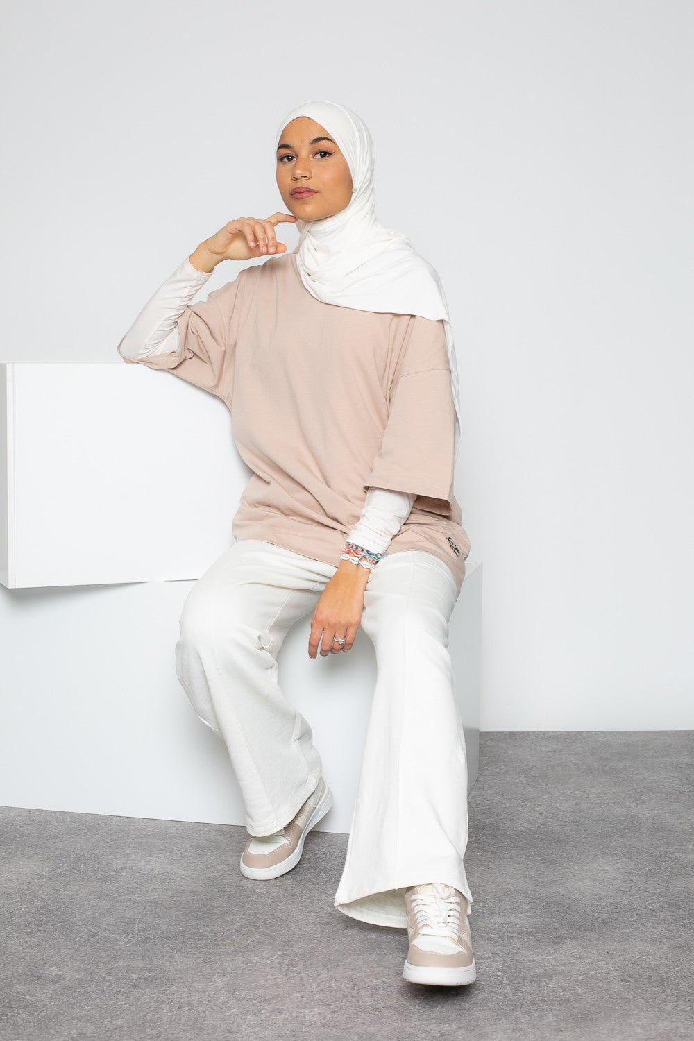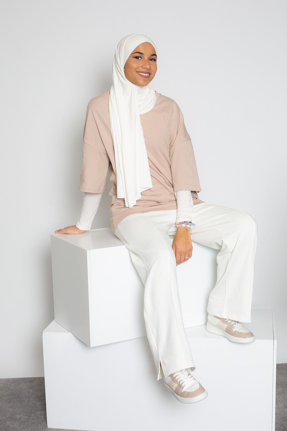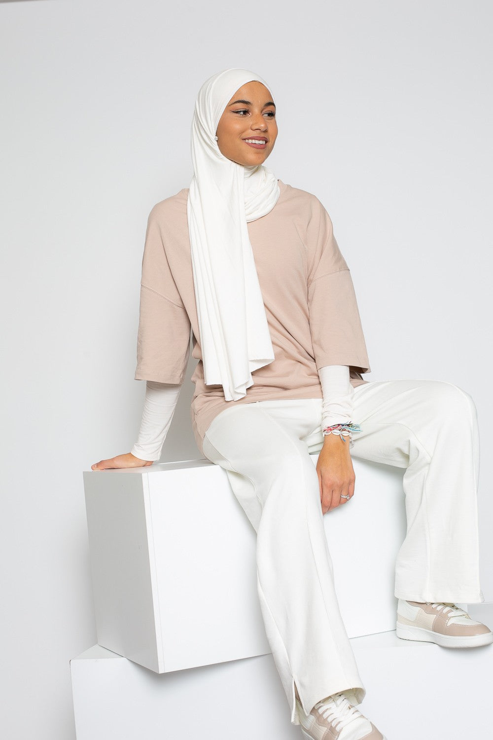 Hijab vague jersey premium beige crème