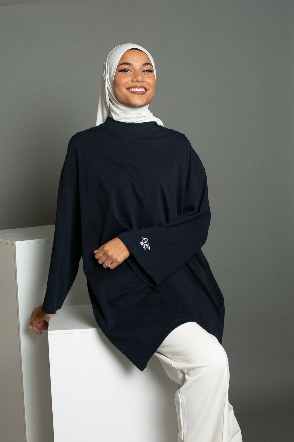 Maxi tee shirt manches larges Bleu foncé Salam