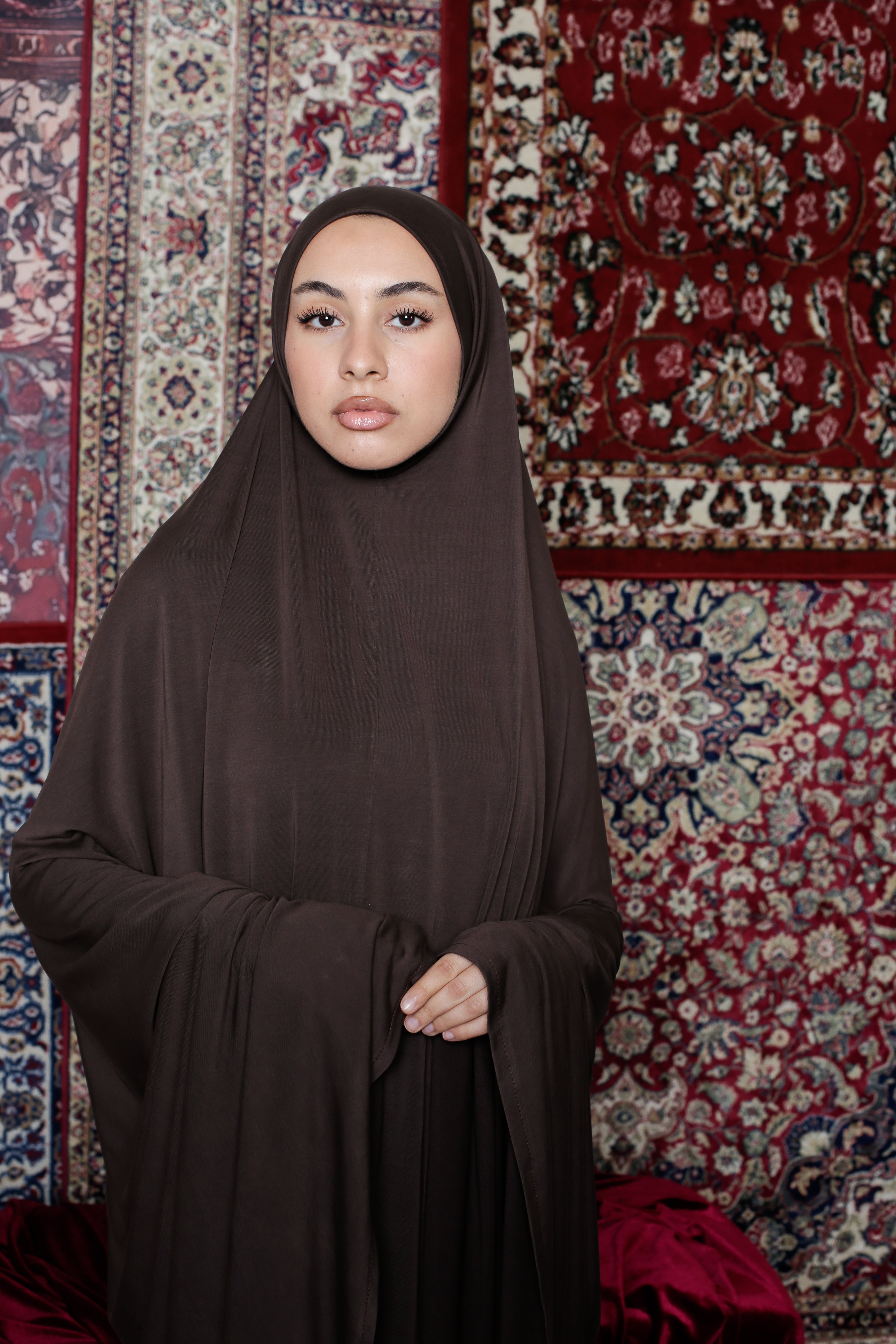Chaque tenue est composée d'une robe ample et fluide accompagnée d'un foulard assorti, offrant une couverture optimale et une grande aisance dans les mouvements. Confectionnés dans des tissus légers et respirants, nos ensembles sont parfaits pour la prière quotidienne à la maison, à la mosquée, ou même pour les sorties quotidiennes.