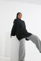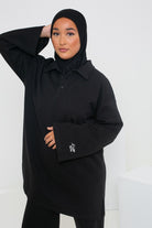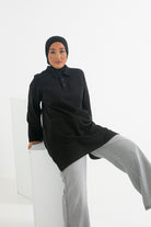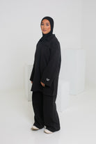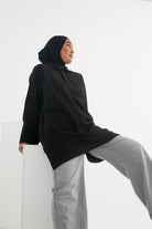 Nous l'avons porté avec le pantalon polo Salam noir assorti, la cagoule hijab 2 en 1 noir et des baskets pour un total look streetwear.