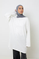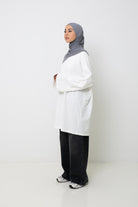 La grande tendance du moment c'est le oversize et tant mieux car c'est ce que recherche la femme modeste. Notre marque CM chic and Modesty vous propose ce magnifique tee shirt oversize pour femme. Un incontournable du dressing de la femme musulmane pour son quotidiens. Coupe oversize, manches longue larges, col rond haut et  broderie Salam sur la manche gauche. Le tissu, de haute qualité est fabriqué en Turquie. Nous avons choisi pour vous les meilleurs tissu en terme de confort et de résistance. Le coton est connu pour ses propriétés absorbantes ce qui est idéal pour vos activités sportives mais également lors des saisons chaudes. Vous pourrez porter ce maxi tee shirt toute l'année.