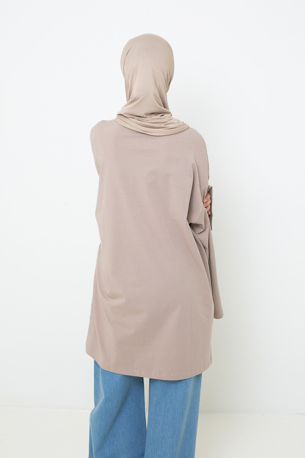 La grande tendance du moment c'est le oversize et tant mieux car c'est ce que recherche la femme modeste. La marque CM vous propose ce magnifique t-shirt oversize pour femme. Un incontournable du dressing de la femme musulmane pour son quotidiens. Coupe oversize, manches longue larges, col rond haut et broderie Salam sur la manche gauche. Le tissu, de haute qualité est fabriqué en Turquie. La marque Salam a choisit pour vous les meilleurs tissu en terme de confort et de résistance. Le coton est connu pour ses propriétés absorbantes ce qui est idéal pour vos activités sportives mais également lors des saisons chaudes. Vous pourrez porter ce maxi t-shirt toute l'année.