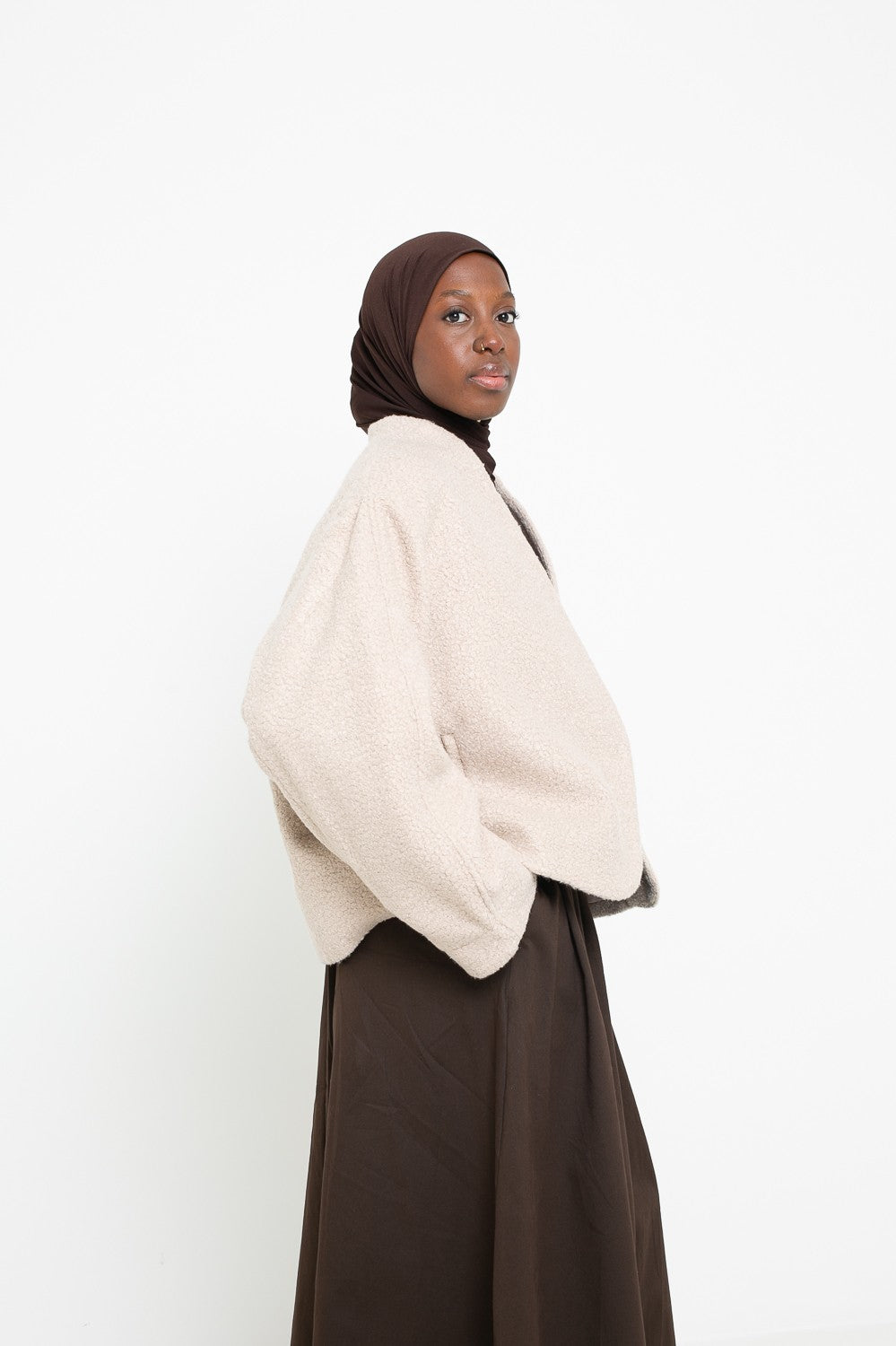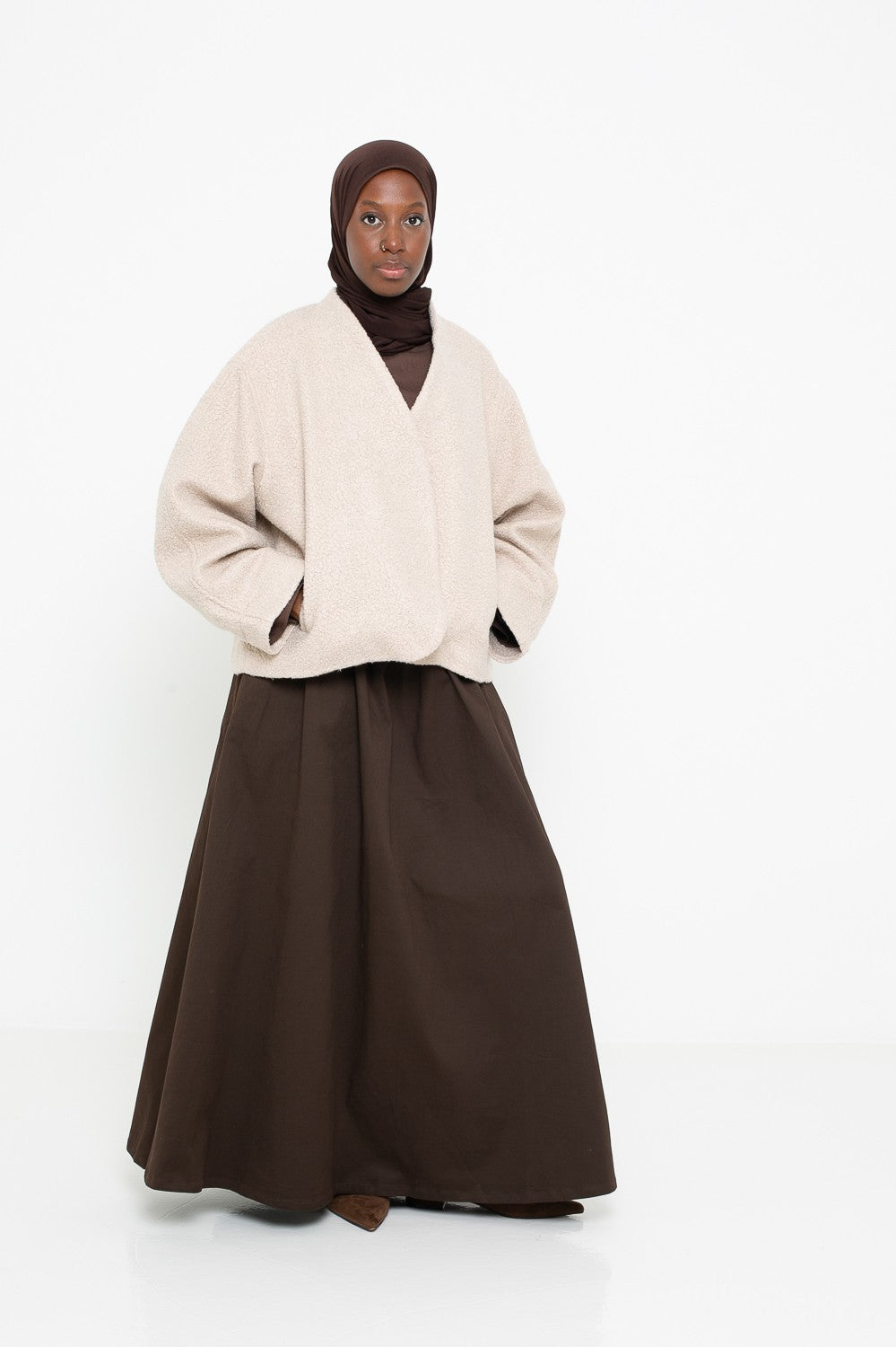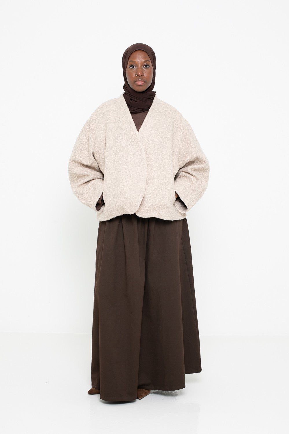 Chaque pièce est sélectionnée pour s’harmoniser avec vos ensembles du quotidien ou vos looks plus habillés. Matières de qualité, finitions soignées et coupes élégantes : tout est réuni pour répondre aux besoins des femmes voilées souhaitant allier tendance et pudeur. Complétez votre garde-robe avec nos vestes structurées, nos gilets oversize et nos manteaux enveloppants, parfaits pour affronter les saisons avec style et confort.