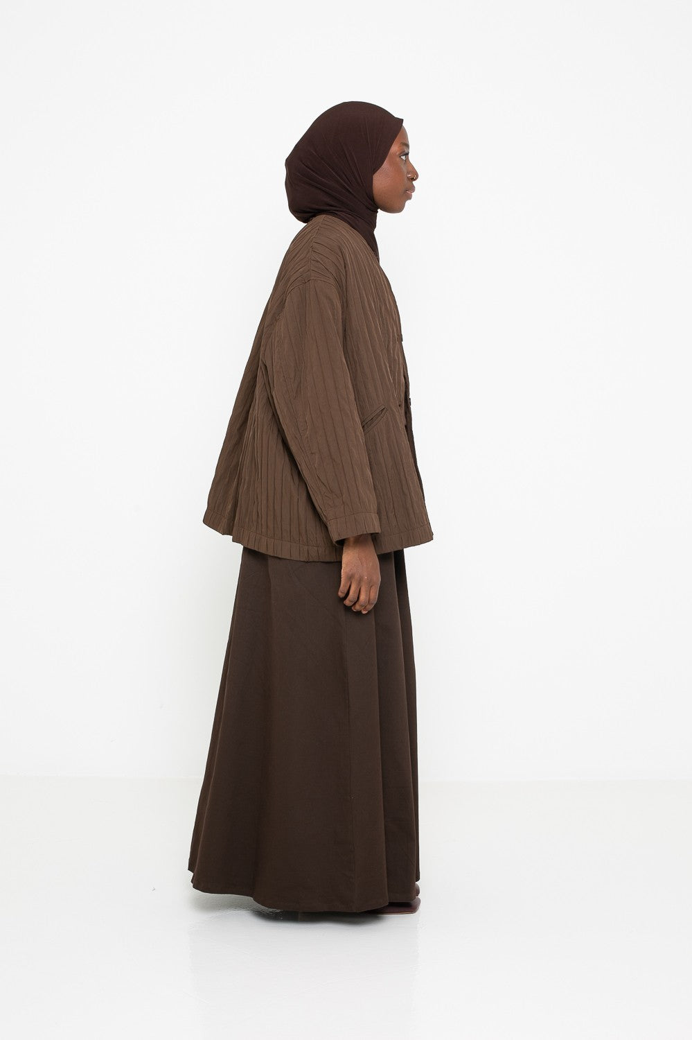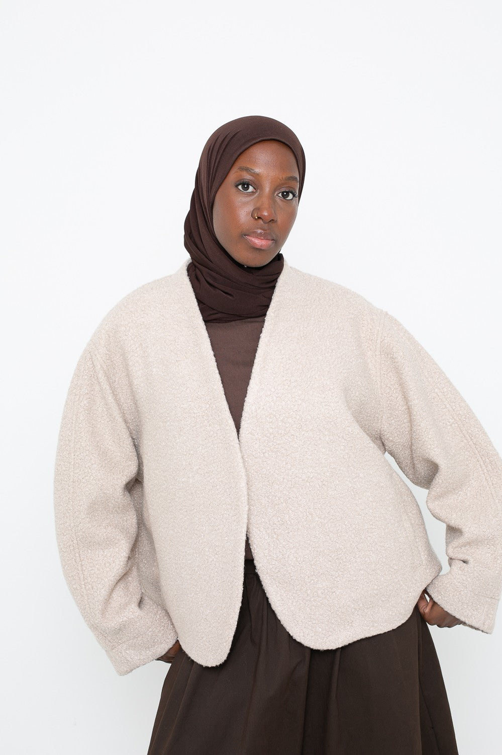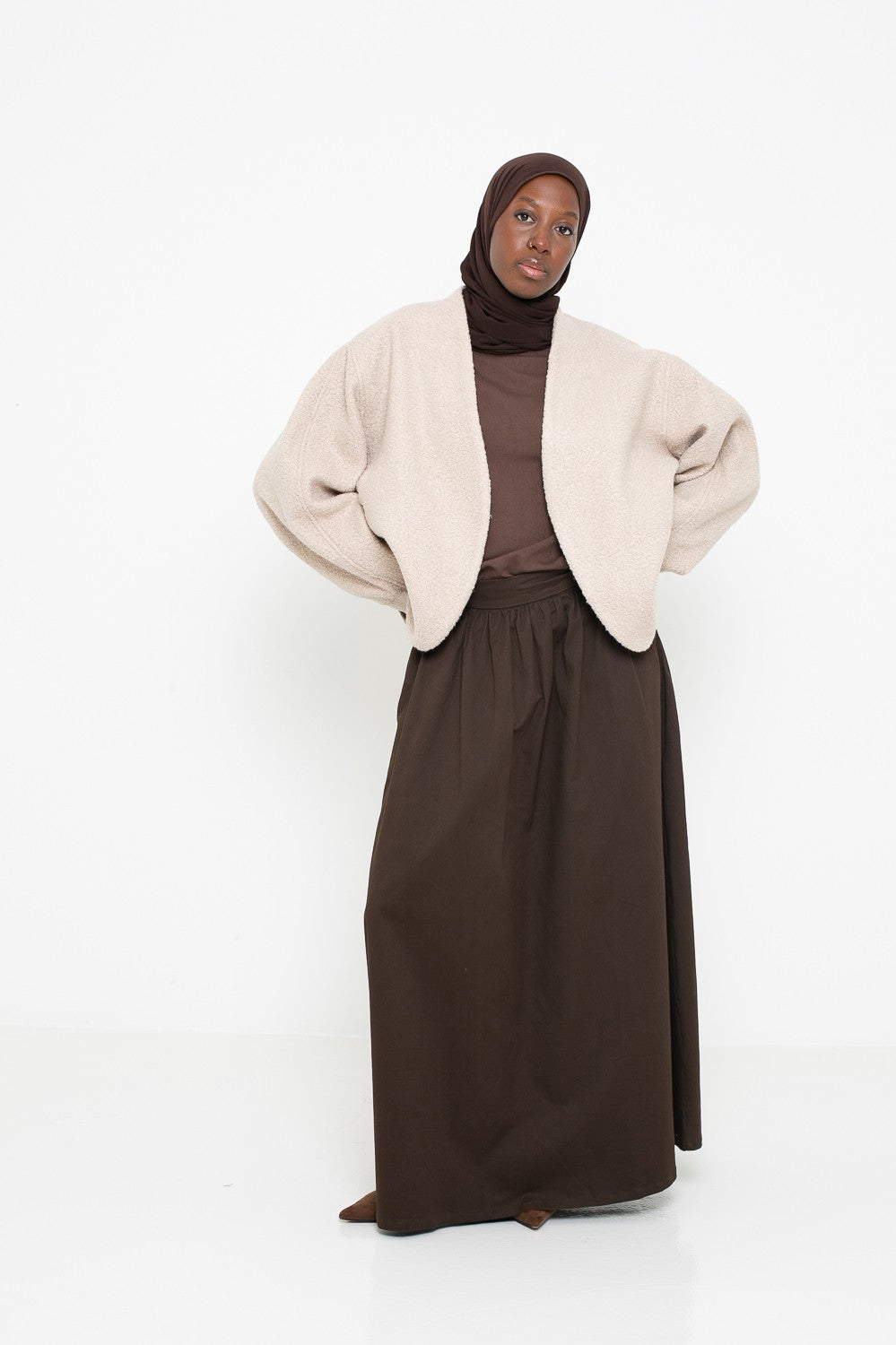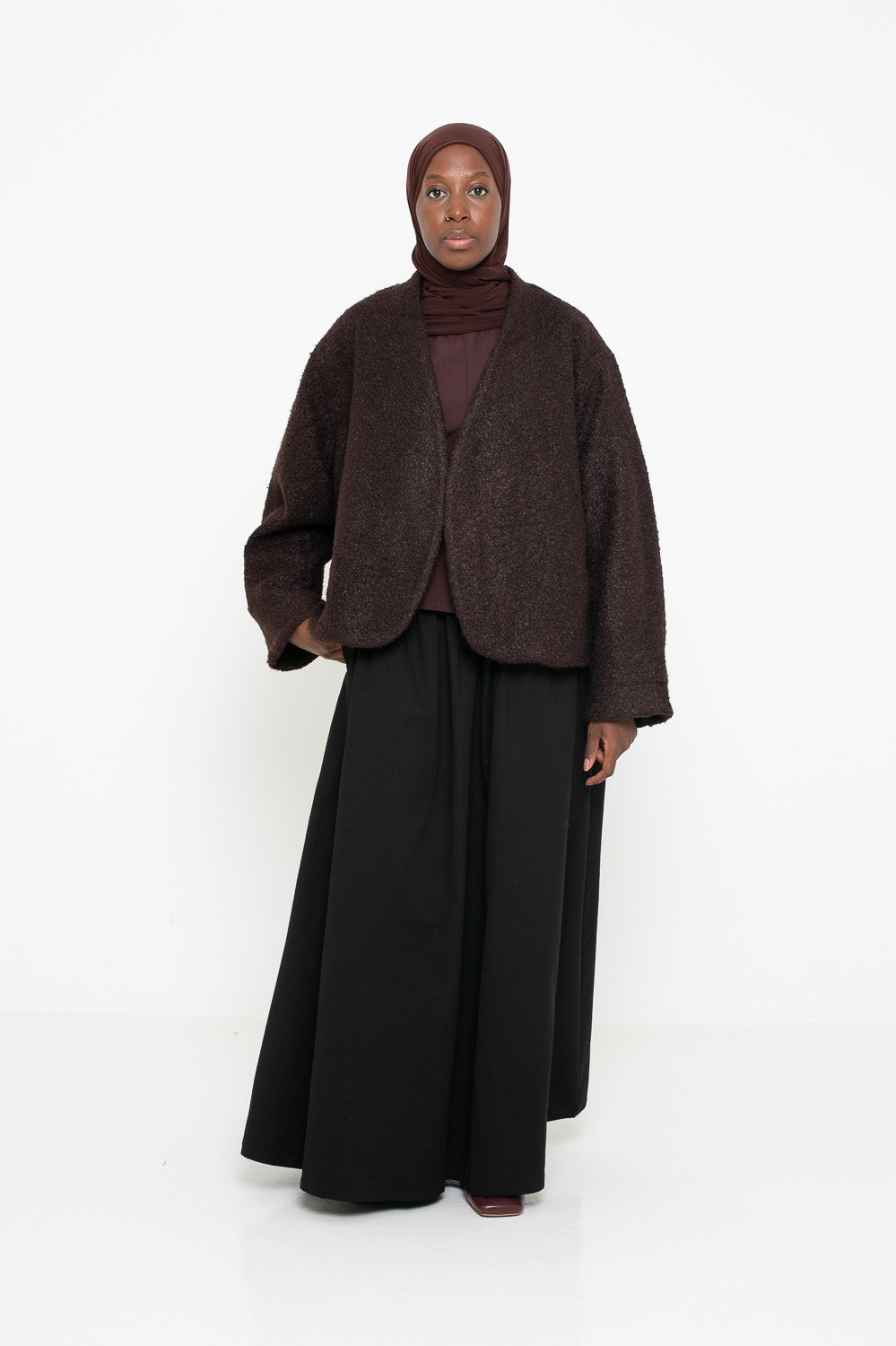 Chaque pièce est sélectionnée pour s’harmoniser avec vos ensembles du quotidien ou vos looks plus habillés. Matières de qualité, finitions soignées et coupes élégantes : tout est réuni pour répondre aux besoins des femmes voilées souhaitant allier tendance et pudeur. Complétez votre garde-robe avec nos vestes structurées, nos gilets oversize et nos manteaux enveloppants, parfaits pour affronter les saisons avec style et confort.