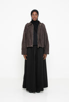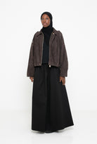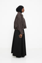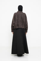 Nous l’avons associée à la jupe Hanoî choco, le top casual Brown, au hijab jersey premium dark brown et à une paire de chaussures simples.