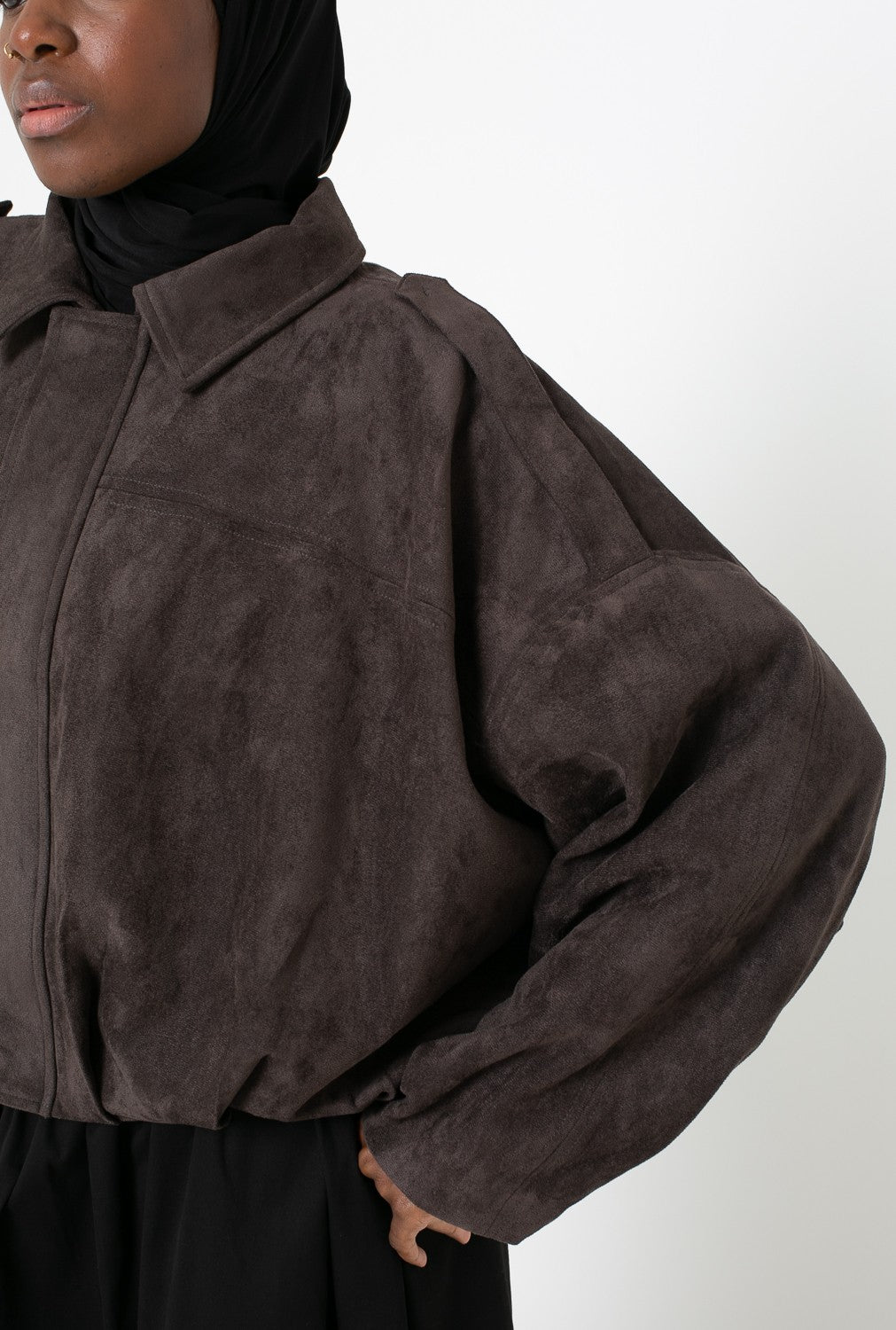Une pièce coup de coeur au style minimaliste et raffiné. Veste en suédine douce qualité premium, à la coupe ample. Son style bomber revisité apporte une touche chic et décontractée à toutes les tenues. Une pièce élégante et confortable, parfaite pour la mi saison. Entièrement doublé.