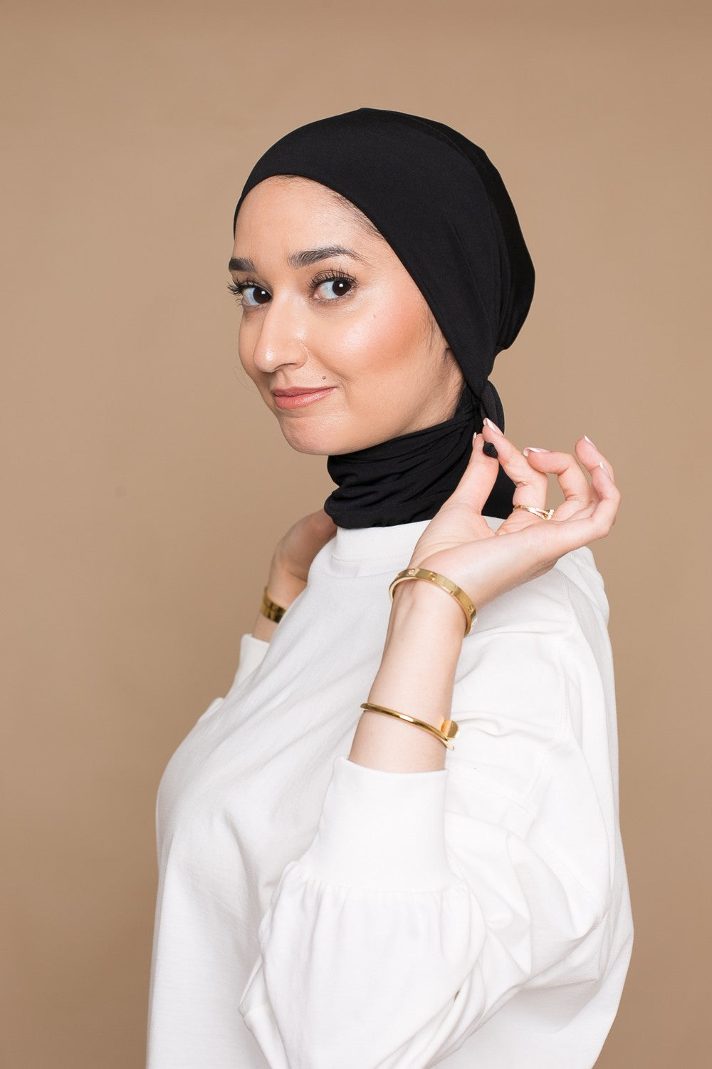 Schwarze Premium-Jersey-Sturmhaube zum Binden