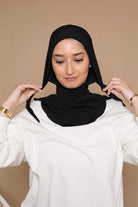 Schicke und schlichte Kreation: Die revolutionäre Sturmhaube zum Binden passt zu jeder Gesichtsform. Der Hals wird dank des Kragens perfekt verdeckt. Hochwertiger Stoff aus türkischer Produktion. Super bequem und nicht drückend. Hochwertiger Stoff, der nicht knittert, geeignet für Sport und Schwimmen. Es ist der gleiche Stoff wie unsere hochwertigen Sand-Jersey-Hijabs.