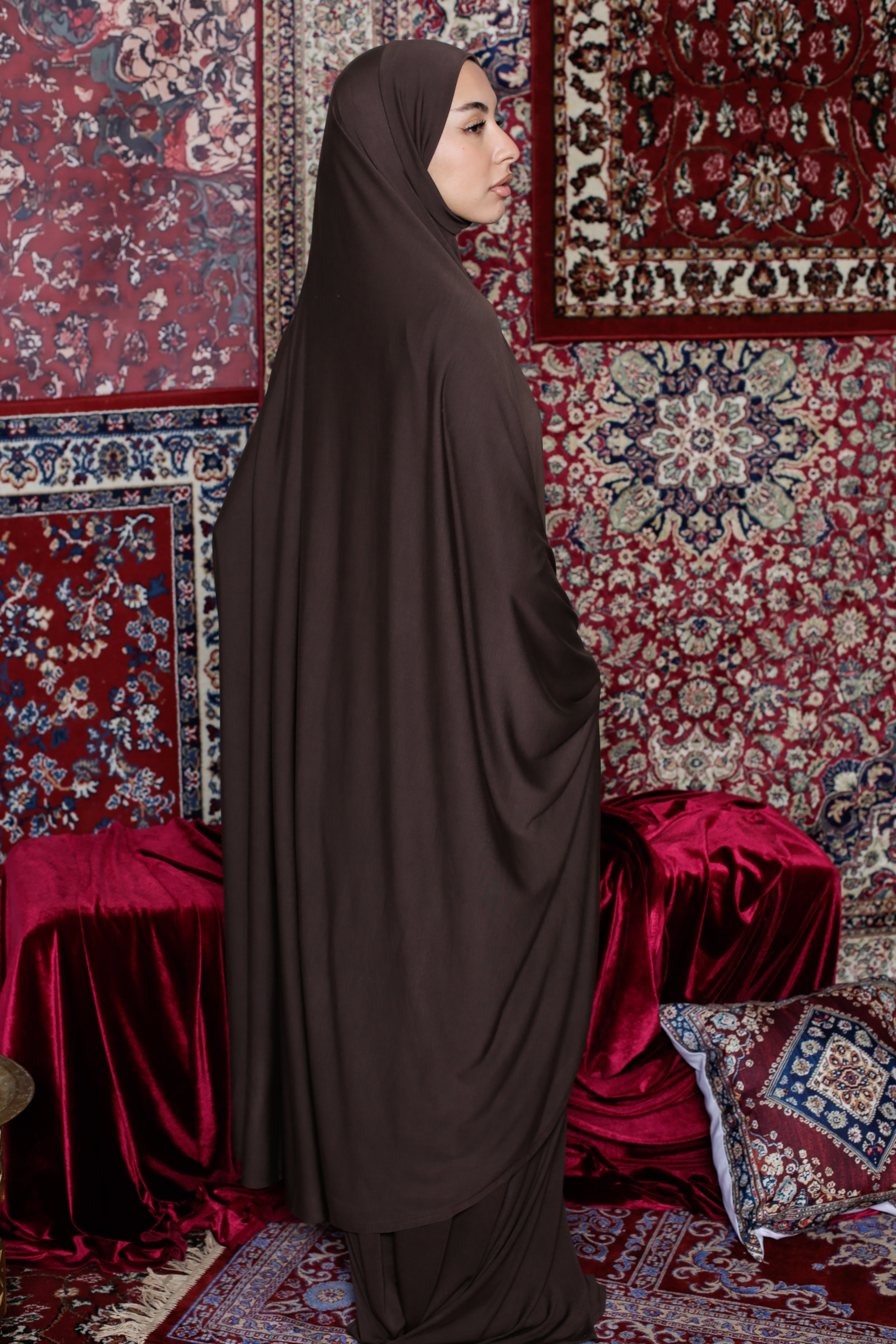 Dieses Gebetsoutfit aus Modalstoff wurde entworfen, um Komfort, Weichheit und Funktionalität zu bieten. Der hochwertige Modalstoff ist bekannt für seinen fließenden Fall, seine Leichtigkeit und sein außergewöhnlich angenehmes Tragegefühl und garantiert so ein komfortables Tragegefühl den ganzen Tag über.