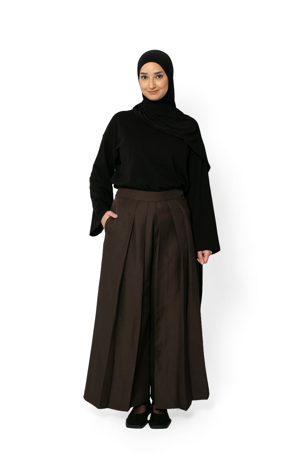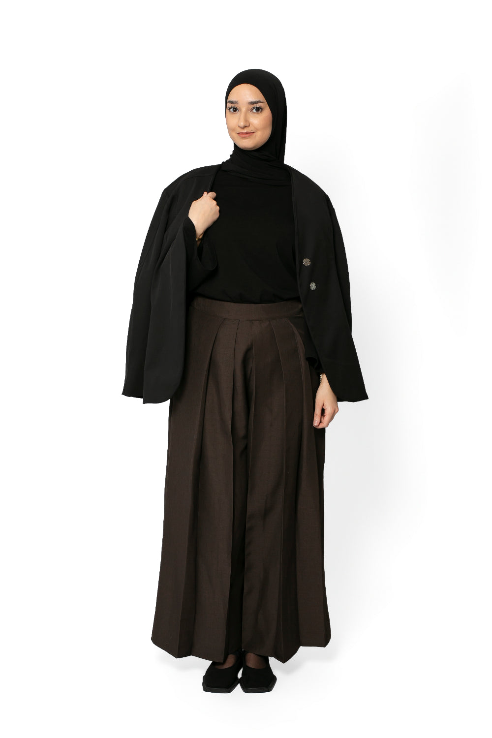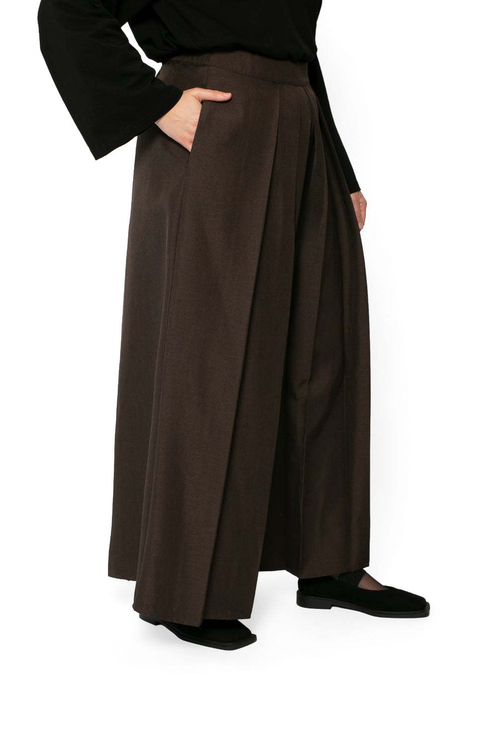 Strukturierter, dunkelbrauner Hakama – Kreation von Chic & Modesty