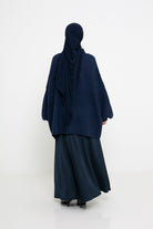 Wir haben uns entschieden, es mit dem schwarzen Grobstrickpullover und dem schwarzen Premium-Jersey-Hijab aus Sandy zu tragen.