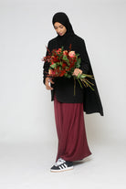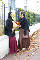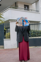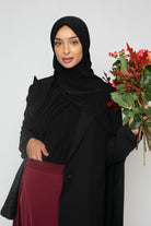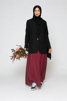 Wir haben uns entschieden, es mit der schwarzen Blazerjacke und dem hochwertigen schwarzen Sandy-Hijab zu tragen.