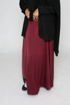 Verleihen Sie Ihrer Garderobe mit diesem langen, ausgestellten Satinrock einen Hauch von Eleganz.
