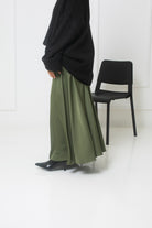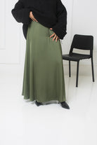 Khakifarbener ausgestellter Satinrock