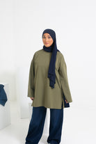 The big trend and essential in the Muslim woman's wardrobe is the loose and simple top. For the spring-summer season, it's the best! Long and wide. A must-have if you want to dress casually. We offer you this magnificent top with a soft and very pleasant cotton fabric. Loose cut, therefore comfortable and covering, you don't see any shape. Round neck. Discover our range of tops on your Chic and Modesty website . Loose, wide sleeves. Off-white embroidered logo at the nape of the neck.