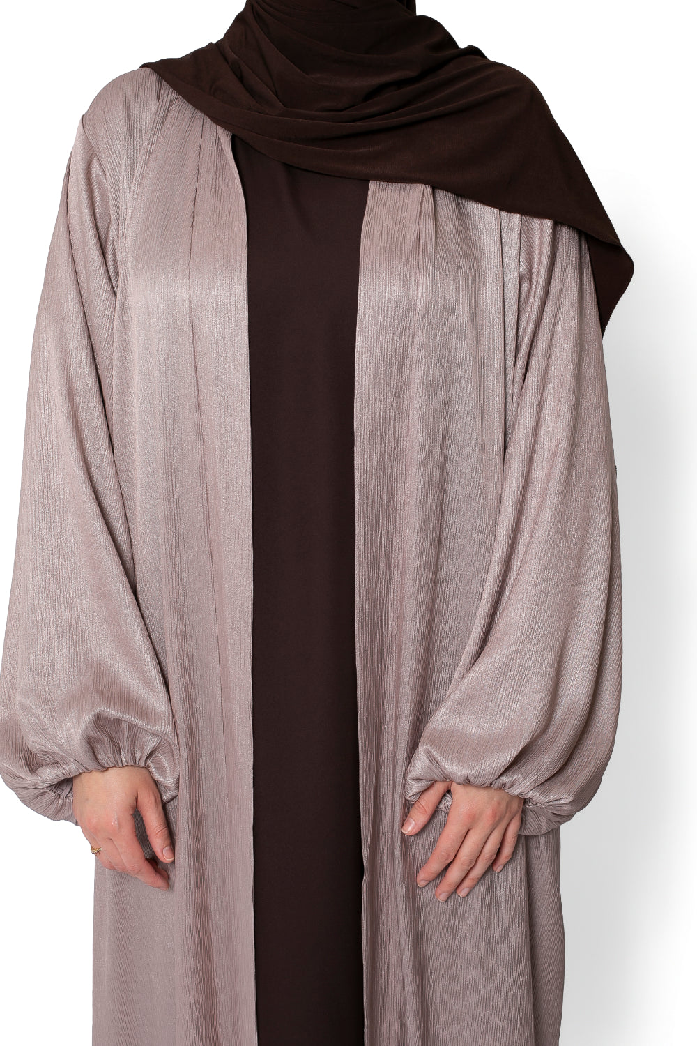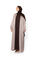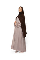 Every detail has been carefully considered to create a simple, chic, and perfectly proportioned nude pink abaya.