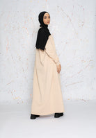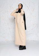 You can wear this abaya with almost any hijab, soft jersey , premium sandy jersey and cotton for a casual everyday style. Finally, to complete this look, a good pair of sneakers will be the ideal combo.