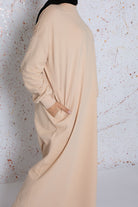 The Salam brand abaya sweatshirt will become a must-have in your wardrobe, for those who love comfortable and trendy outfits You'll love the loose fit and sportswear style. Ultra-comfortable cut, round neck, elastic cuffs for practical ablutions. 100% cotton fabric for 4 seasons. Large pockets with Salam embroidery. Made in Turkey.