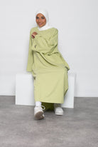 You can wear this abaya with almost any hijab, soft jersey , premium sandy jersey and cotton for a casual everyday style. Finally, to complete this look, a good pair of sneakers will be the ideal combo.