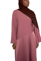 This deep raspberry satin maxi dress is an exclusive Chic & Modesty creation designed to enhance formal ceremonies and events.