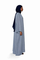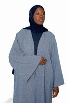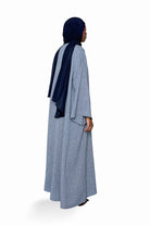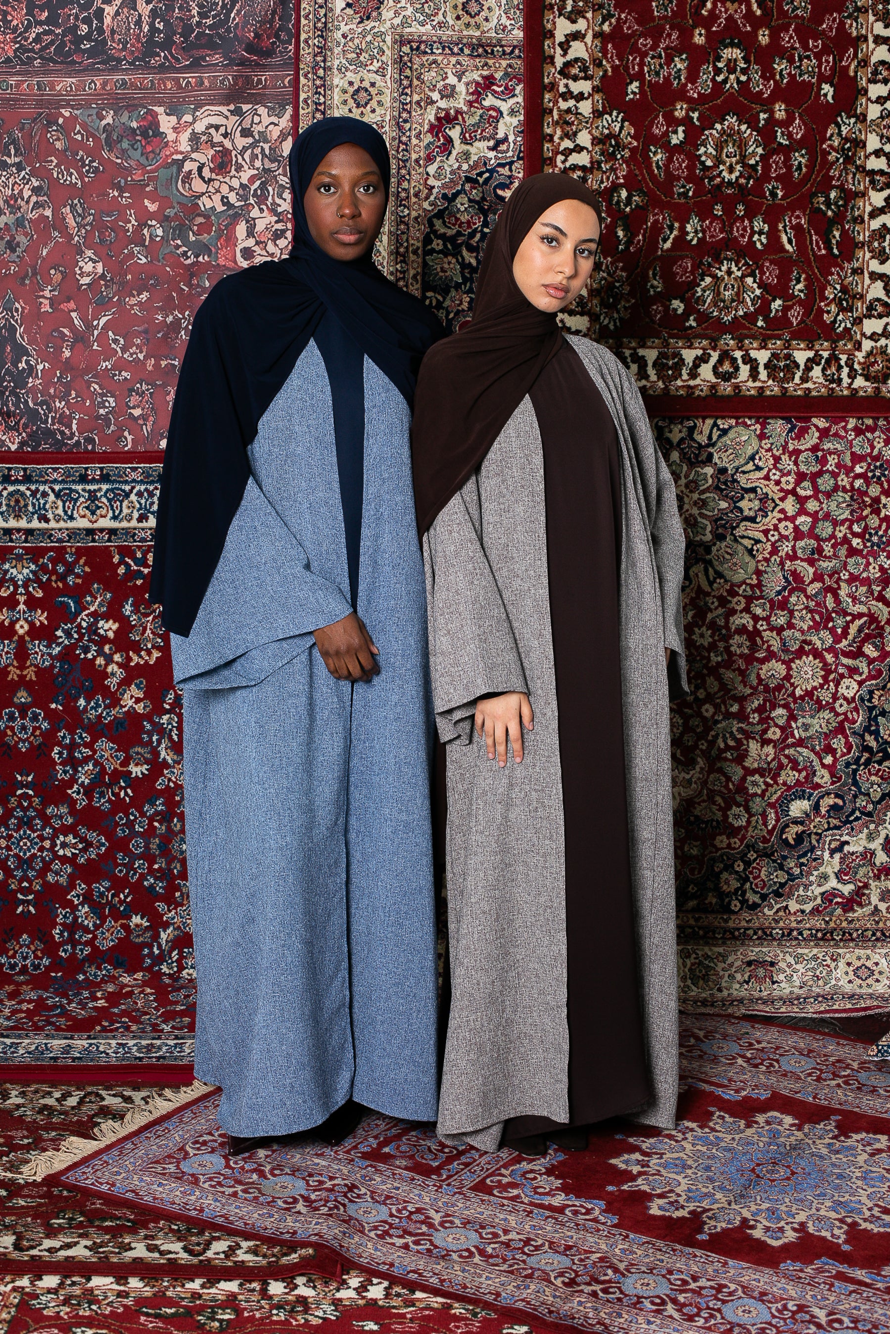 Le tweed est un tissu noble reconnu pour son aspect texturé et sa richesse visuelle. Traditionnellement utilisé dans les pièces haut de gamme, il apporte de la structure tout en conservant un rendu élégant et intemporel. Dans cette abaya, le tweed est travaillé de manière fluide afin d’offrir un tombé souple et agréable, sans rigidité, pour un confort optimal.