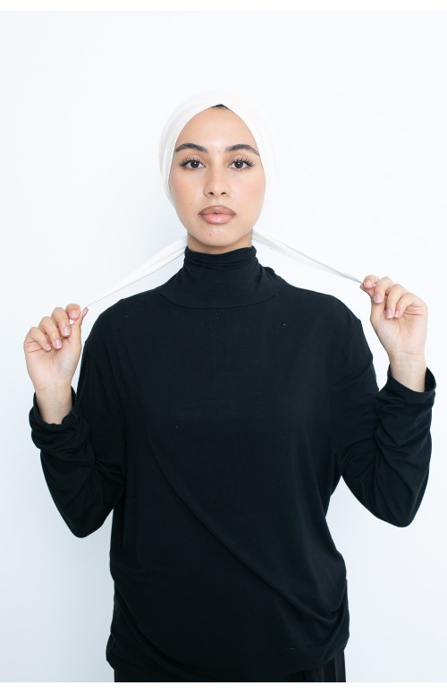 Cremeweiße Jersey-Crossover-Mütze mit Krawatte