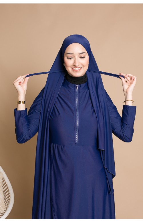 - Ein Hijab zum Binden: Dies ist das gleiche Modell wie das, das wir normalerweise verkaufen, jedoch aus Burkini-Stoff, sodass der Halt optimal ist.