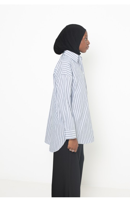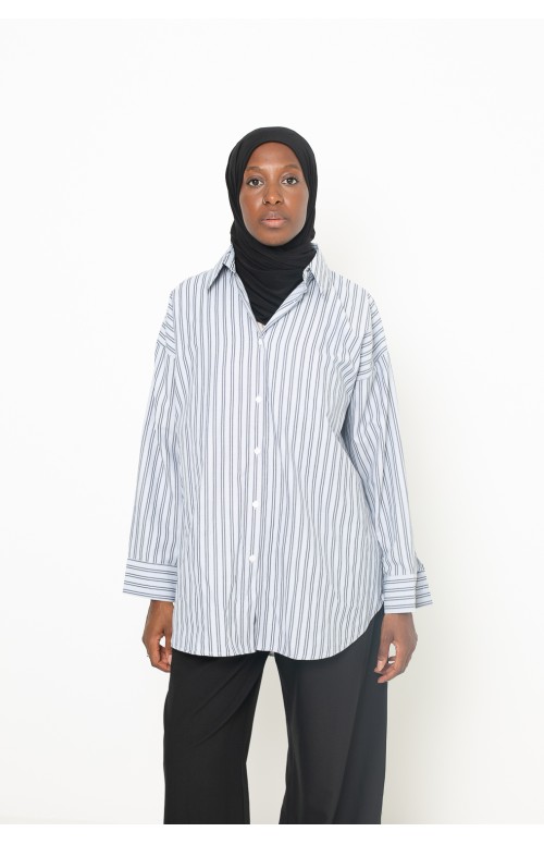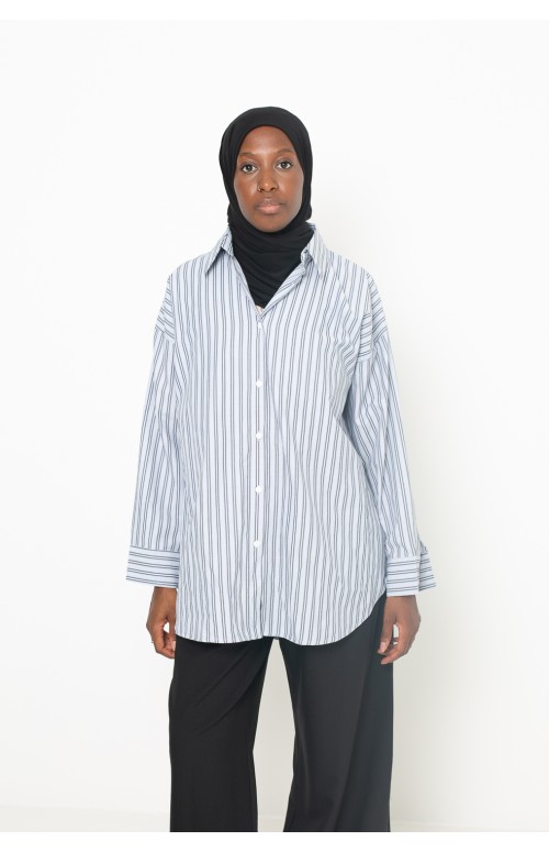 Entdecken Sie unser gestreiftes Oversize-Hemd , ein elegantes und zeitloses Kleidungsstück, das Komfort und Stil vereint. Hergestellt aus einem hochwertigen, fließenden Stoff , fällt es leicht und raffiniert. Der trendige Oversize-Schnitt sorgt für einen modernen und entspannten Look und passt gleichzeitig perfekt zu einem eleganten und eleganten Look.