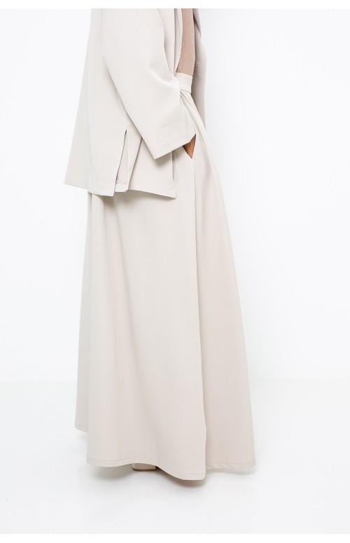 Entdecken Sie einen maßgeschneiderten Premium-Anzug aus fließendem, hochwertigem Stoff, der sorgfältig für Eleganz, Komfort und Haltbarkeit ausgewählt wurde. Dieses zweiteilige Set besteht aus einer eleganten Blazerjacke und einem weiten , fließenden Rock und schafft so eine schicke, moderne und zeitlose Silhouette.