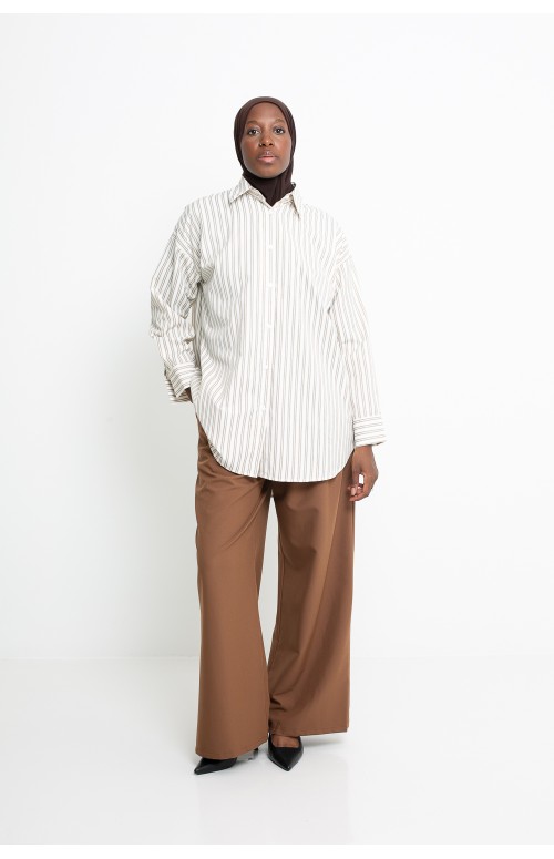 Für einen lässigen und trendigen Look trugen wir es mit hellblauen, weiten Jeans , dem dunkeltaupefarbenen Hijab aus Premium-Jersey und einem Paar blauen Sneakers für einen modernen, lässigen Touch.