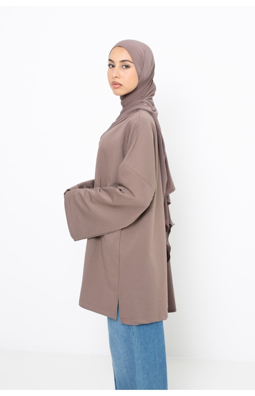 Der große Trend und ein Must-have in der Garderobe muslimischer Frauen ist das lockere und schlichte Top. Für die Frühlings- und Sommersaison ist es das perfekte Modell! Lang und weit. Ein Must-have für lässige Outfits. Wir bieten Ihnen dieses wunderschöne Top aus weichem und angenehm zu tragendem Baumwollstoff. Locker geschnitten, daher bequem und bedeckend, man sieht keine Form. Rundhalsausschnitt. Entdecken Sie unser Top -Sortiment auf Ihrer Chic and Modesty Website. . Lockere und weite Ärmel.