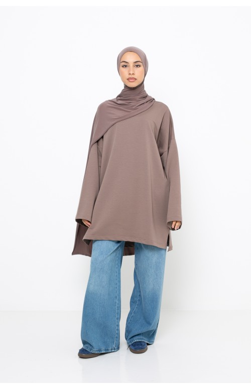 Der große Trend und ein Must-have in der Garderobe muslimischer Frauen ist das lockere und schlichte Top. Für die Übergangszeit ist es einfach perfekt! Lang und weit. Ein Must-have für lässige Outfits. Wir bieten Ihnen dieses wunderschöne Top aus weichem und angenehm zu tragendem Baumwollstoff. Locker geschnitten, daher bequem und bedeckend, man sieht keine Form. Rundhalsausschnitt. Entdecken Sie unser Top -Sortiment auf Ihrer Chic and Modesty-Website. . Lockere und weite Ärmel.