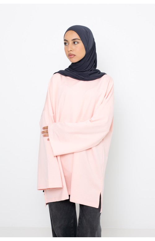 Der große Trend und ein Must-have in der Garderobe muslimischer Frauen ist das lockere und schlichte Top. Für die Übergangszeit ist es einfach perfekt! Lang und weit. Ein Must-have für lässige Outfits. Wir bieten Ihnen dieses wunderschöne Top aus weichem und angenehm zu tragendem Baumwollstoff. Locker geschnitten, daher bequem und bedeckend, man sieht keine Form. Rundhalsausschnitt. Entdecken Sie unser Top -Sortiment auf Ihrer Chic and Modesty-Website. . Lockere und weite Ärmel.
