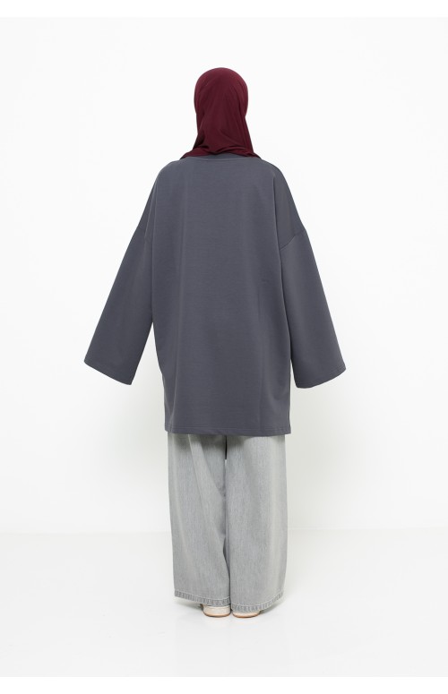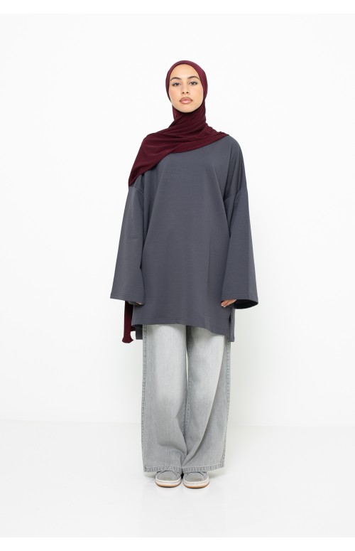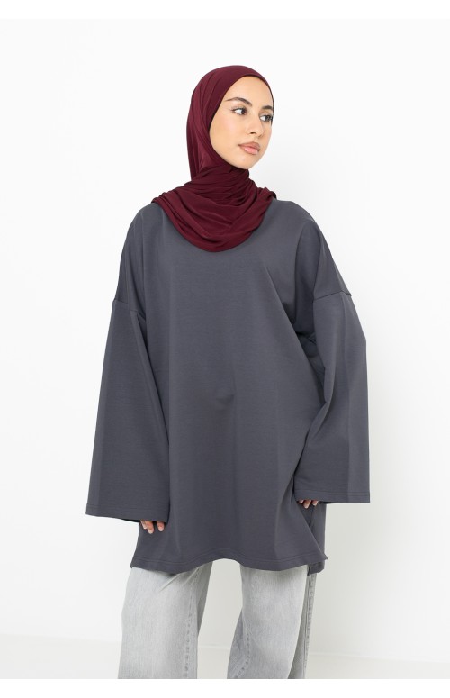 Der große Trend und ein Must-have in der Garderobe muslimischer Frauen ist das lockere und schlichte Top. Für die Übergangszeit ist es einfach perfekt! Lang und weit. Ein Must-have für lässige Outfits. Wir bieten Ihnen dieses wunderschöne Top aus weichem und angenehm zu tragendem Baumwollstoff. Locker geschnitten, daher bequem und bedeckend, man sieht keine Form. Rundhalsausschnitt. Entdecken Sie unser Top -Sortiment auf Ihrer Chic and Modesty-Website. . Lockere und weite Ärmel.