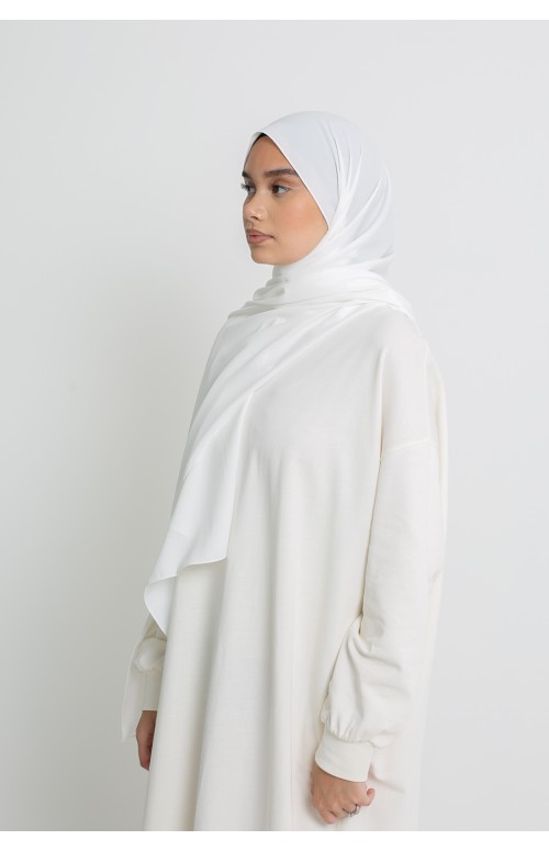 Medina-Seide ist ein hochwertiger Stoff. Es besteht aus synthetischem Material, das ihm eine Weichheit und eine sehr angenehme Haptik verleiht. Einer der Vorteile dieses Hijabs ist seine Lichtundurchlässigkeit, außer bei Weiß natürlich immer ein wenig transparent, und vor allem seine unglaubliche Fließfähigkeit. Dieser Hijab bringt Eleganz in Ihre Alltagsoutfits oder zu festlichen Anlässen. Medina-Seide ist das Lieblingsmaterial verschleierter Frauen, da ihr Material angenehm zu tragen und zu berühren ist.