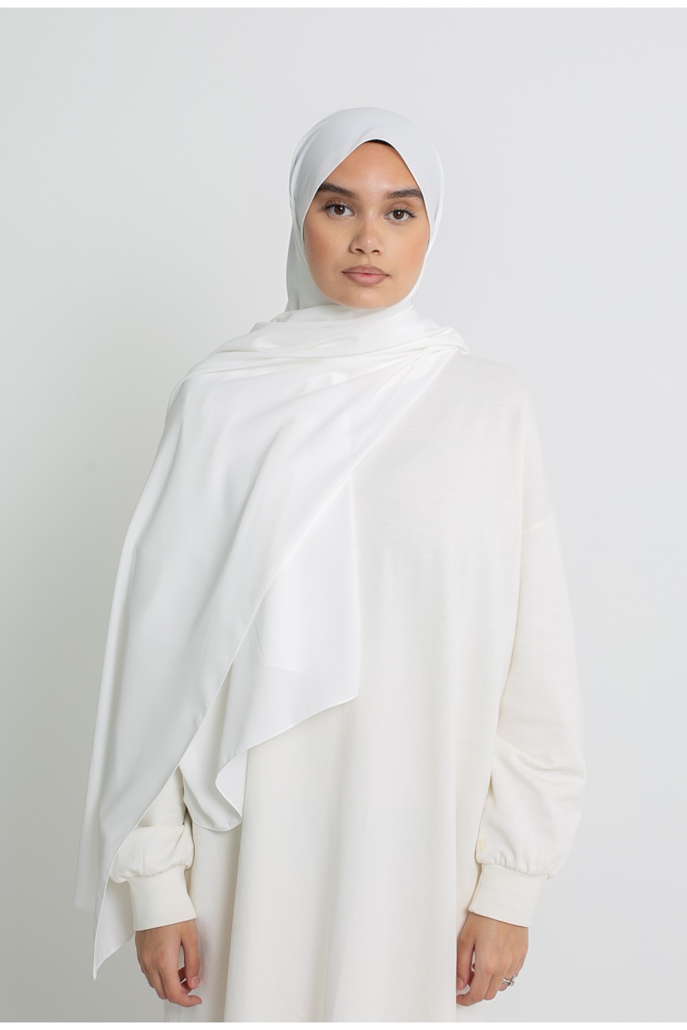 Prächtiger High-End-Hijab aus blickdichtem Qualitätsstoff, flüssigkeits- und knitterfest. Medina-Seide ist ein revolutionärer Stoff, wenn Sie ihn einmal probiert haben, werden Sie ihn nicht mehr missen wollen! Schicke und bescheidene Kreation aus der Türkei.