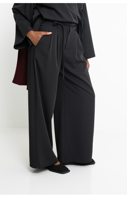 Für einen noch eleganteren Look tragen Sie sie mit einem passenden Blazer und einem strukturierten Hijab und kreieren so ein professionelles und elegantes Outfit. Für eine lässigere Version passen diese Hosen perfekt zu einem übergroßen Hemd und schicken Slippern .