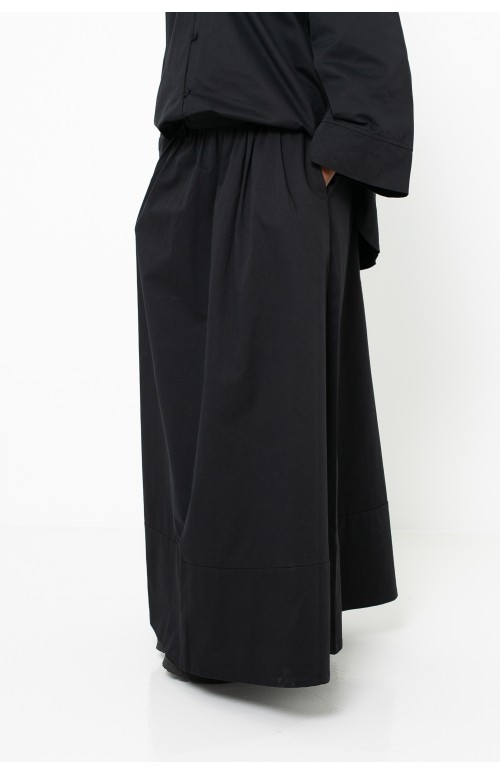 Der übergroße schwarze Baumwollrock mit elastischer Taille und japanischem Stil ist das unverzichtbare Trendstück für einen bequemen Look