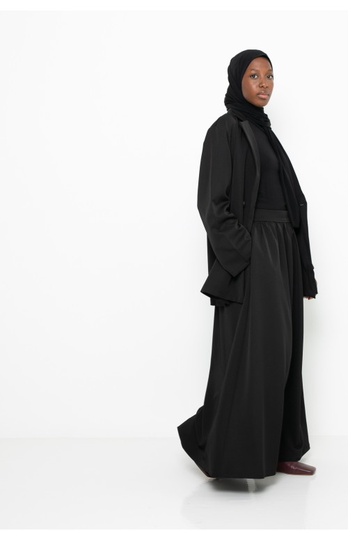 Entdecken Sie einen hochwertigen, fließenden und eleganten Rock aus dem gleichen hochwertigen Stoff wie das Blazer-Set. Sein Trapezschnitt und der raffinierte Fall machen ihn zu einem modernen, schicken und zeitlosen Kleidungsstück, das Ihre Outfits zu allen Gelegenheiten begleitet.