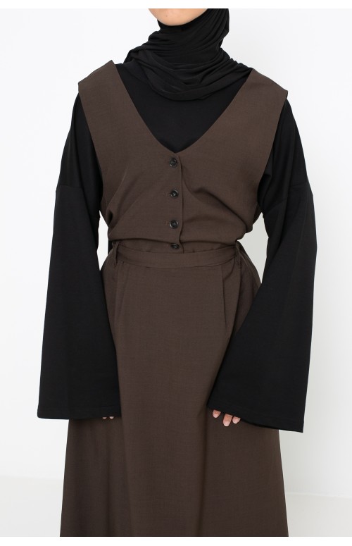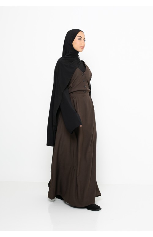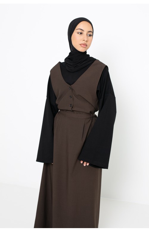 Entdecken Sie unser ärmelloses Kleid , ein zeitloses Stück, das Eleganz, Komfort und Modernität vereint. Aus einem blickdichten und fließenden Stoff gefertigt, ist es ideal für die Übergangszeit sowie für Herbst und Winter. Sein raffinierter V-Ausschnitt betont die Silhouette, während der leicht ausgestellte, gerade Schnitt für einen eleganten und harmonischen Fall sorgt.