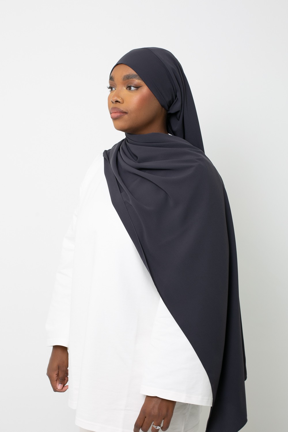 Bindefertiger Hijab aus anthrazitgrauer Medina-Seide