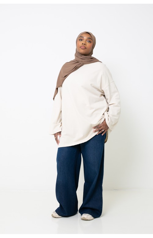 Der große Trend der Stunde ist Oversize , und das ist gut so, denn genau danach suchen kultivierte Frauen. Die Marke CM bietet Ihnen dieses wunderschöne Oversize-T- Shirt für Damen. Ein Must-have für die Garderobe muslimischer Frauen im Alltag. Übergroßer Schnitt, lange weite Ärmel, hoher Rundhalsausschnitt und Salam-Stickerei auf dem linken Ärmel. Der hochwertige Stoff wird in der Türkei hergestellt. Die Marke CM hat für Sie die besten Stoffe in Bezug auf Komfort und Haltbarkeit ausgewählt.
