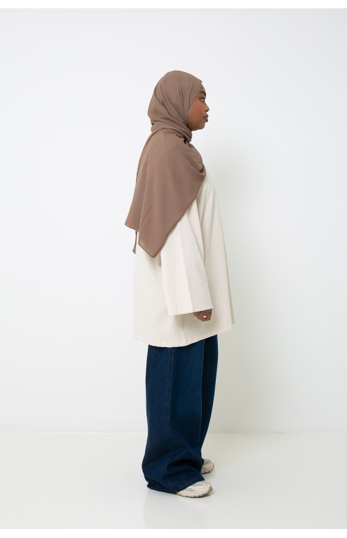 Für dieses Outfit haben wir eine locker sitzende Jeans mit einem luxuriösen Chiffon-Hijab und Sneakers kombiniert. Das Oversize-T-Shirt lässt sich auch gut mit einer Wide-Leg-Jeans und Sneakers kombinieren.