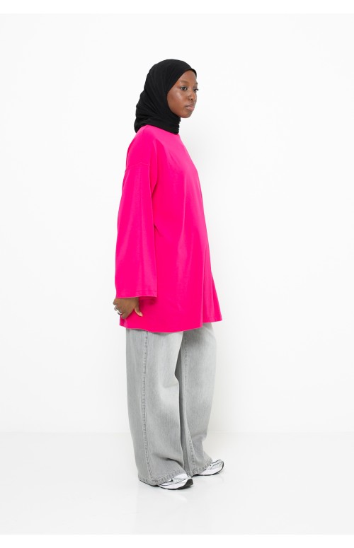 Der große Trend der Stunde ist Oversize , und das ist gut so, denn genau das suchen kultivierte Frauen. Die Marke CM bietet Ihnen dieses wunderschöne Oversize-T-Shirt für Damen. Ein Must-have in der Garderobe muslimischer Frauen für ihren Alltag. Übergroßer Schnitt, lange weite Ärmel, hoher Rundhalsausschnitt und Salam-Stickerei auf dem linken Ärmel. Der hochwertige Stoff wird in der Türkei hergestellt. Die Marke Salam hat für Sie die besten Stoffe in Bezug auf Komfort und Haltbarkeit ausgewählt. Baumwolle ist bekannt für ihre saugfähigen Eigenschaften, die ideal für Ihre sportlichen Aktivitäten, aber auch in der wärmeren Jahreszeit sind. Sie können dieses Maxi-T-Shirt das ganze Jahr über tragen.