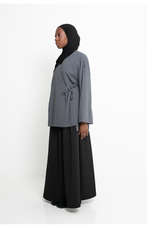 Eine fließende und elegante Jacke mit Bindeband vorne, Innen- und Außenbändern für eine perfekte Passform und verstellbarer Taille. Aus hochwertigem Stoff gefertigt, passt sie gut zu Hosen, Röcken oder Kleidern und bietet unendliche Vielseitigkeit.