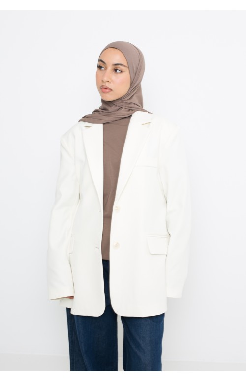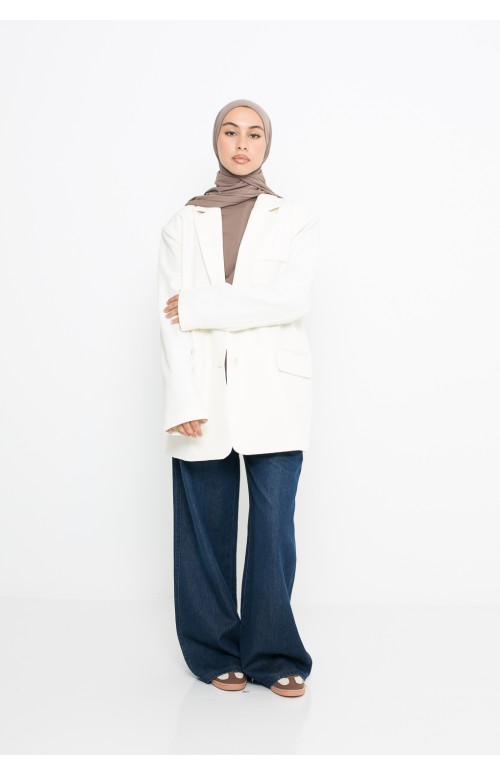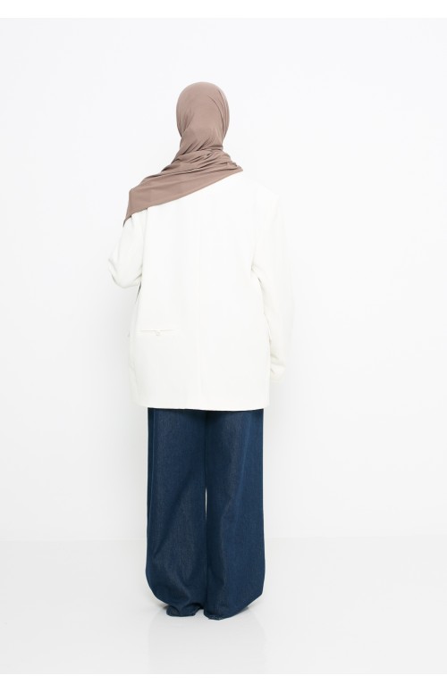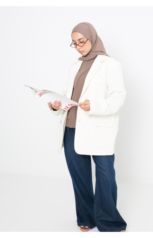 Elegant cream blazer, a timeless classic revisited in a modern and minimalist cut. Chic and structured cut; neat finish and refined details. Ideal for a classy look or a chic casual style. Fully lined, premium fabric.