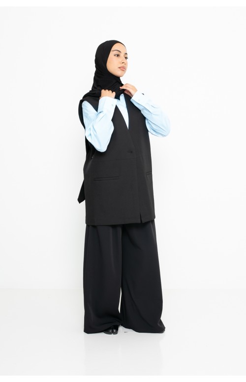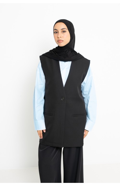 Black sleeveless open blazer