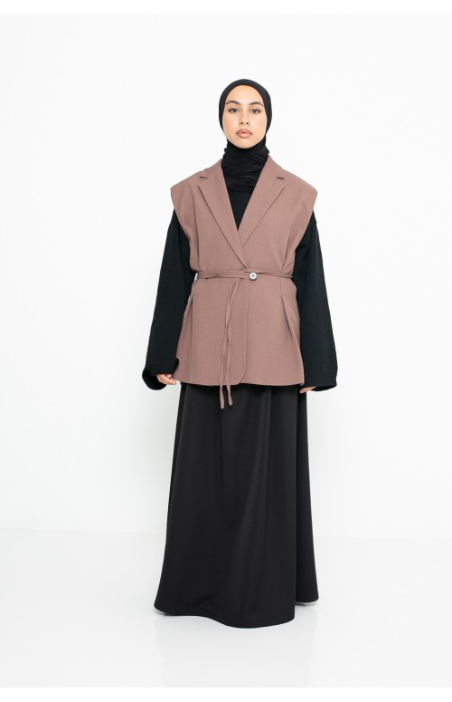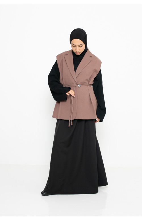 We wore it with the Paris city skirt, the black minimalist vest, the black premium jersey hijab and a pair of black shoes.